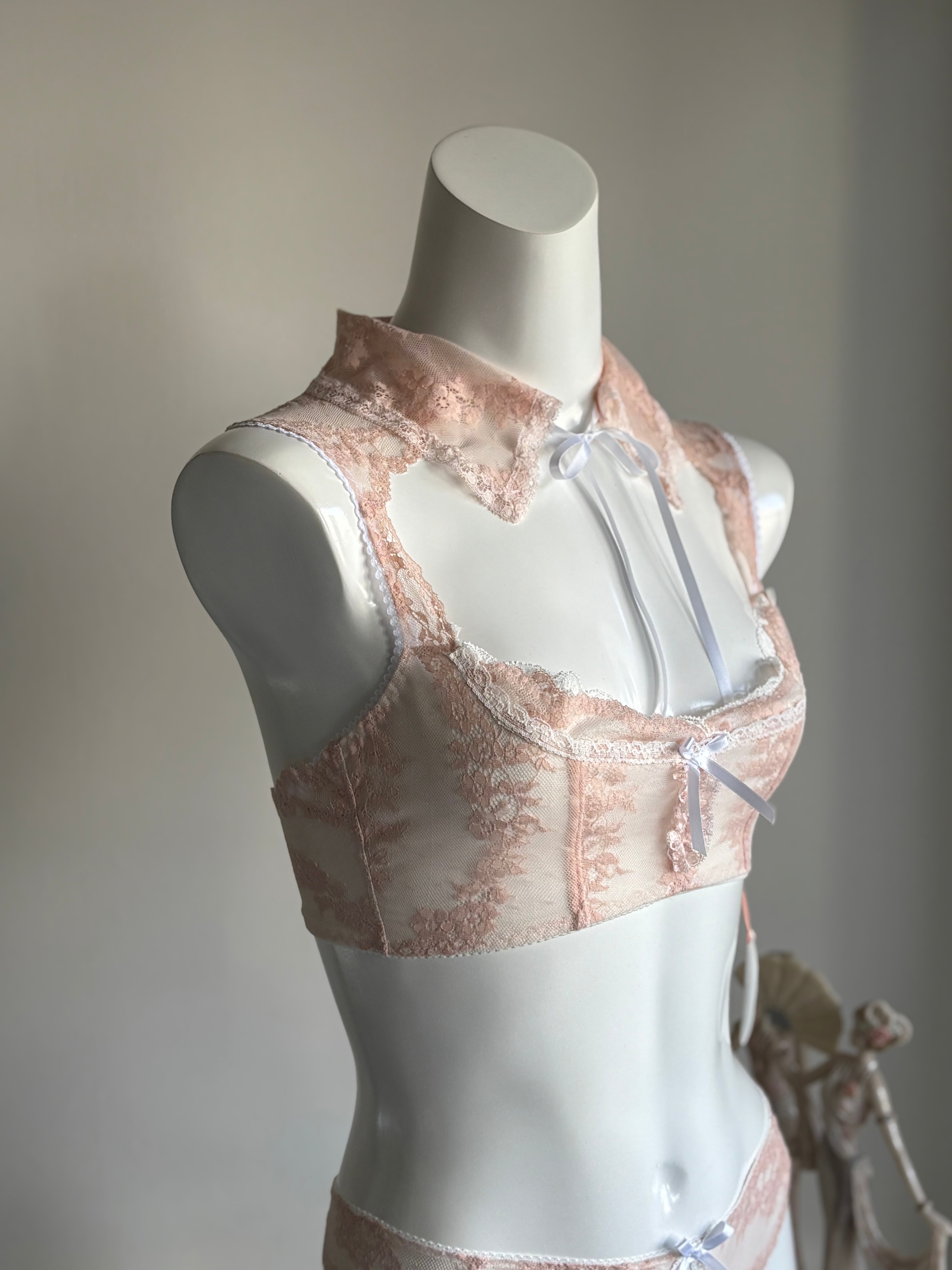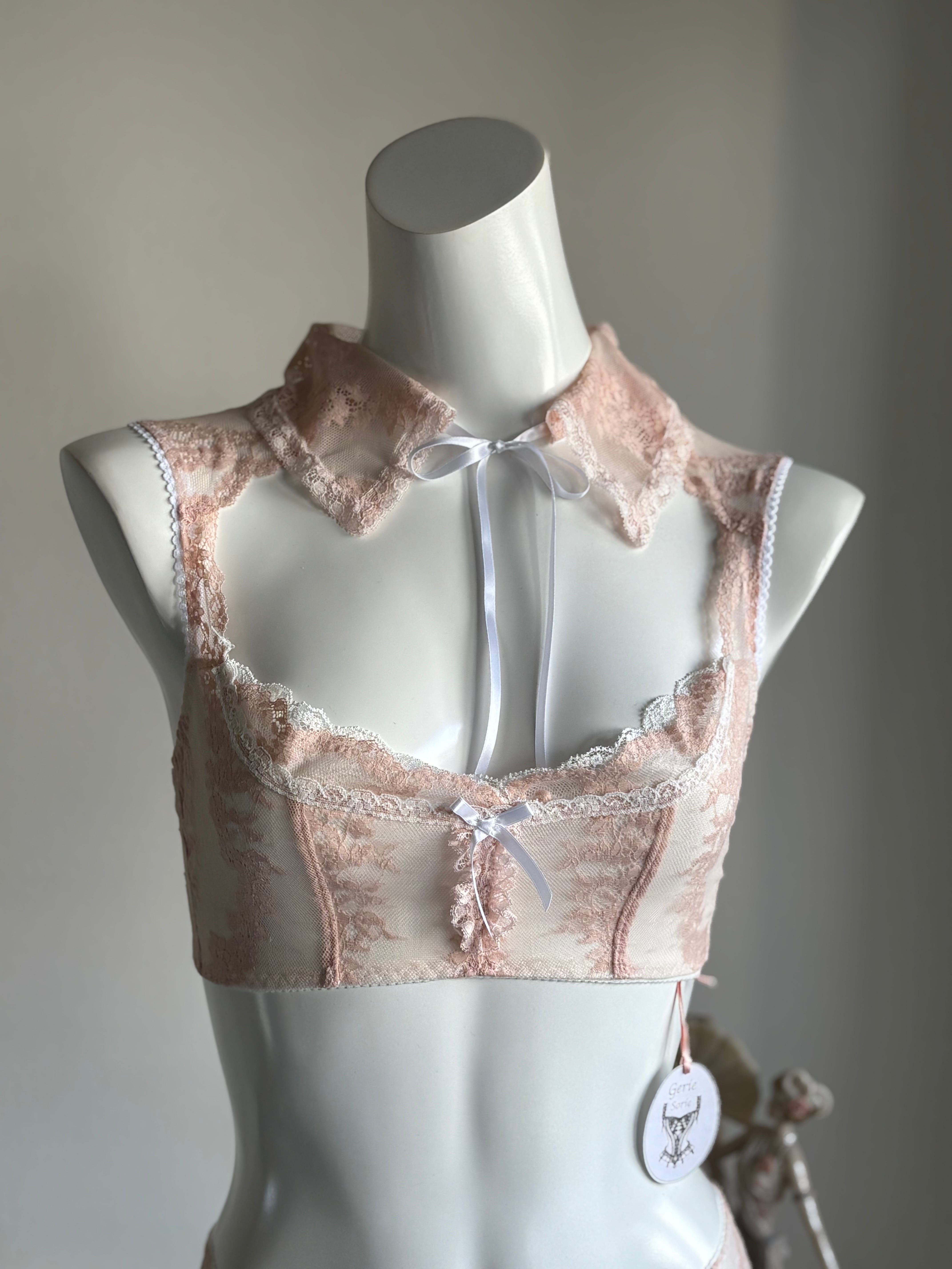 柔らかストレッチレースの可愛らしい襟がデザインポイントのブラレット